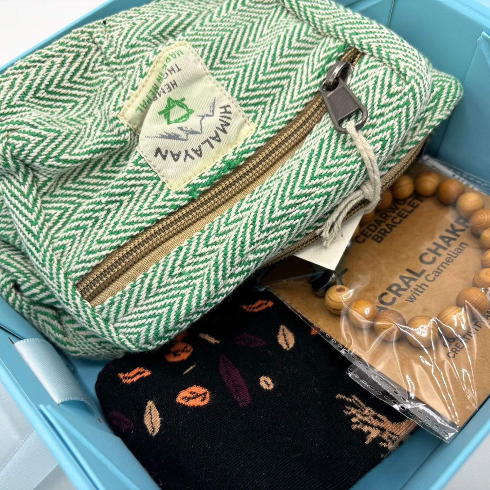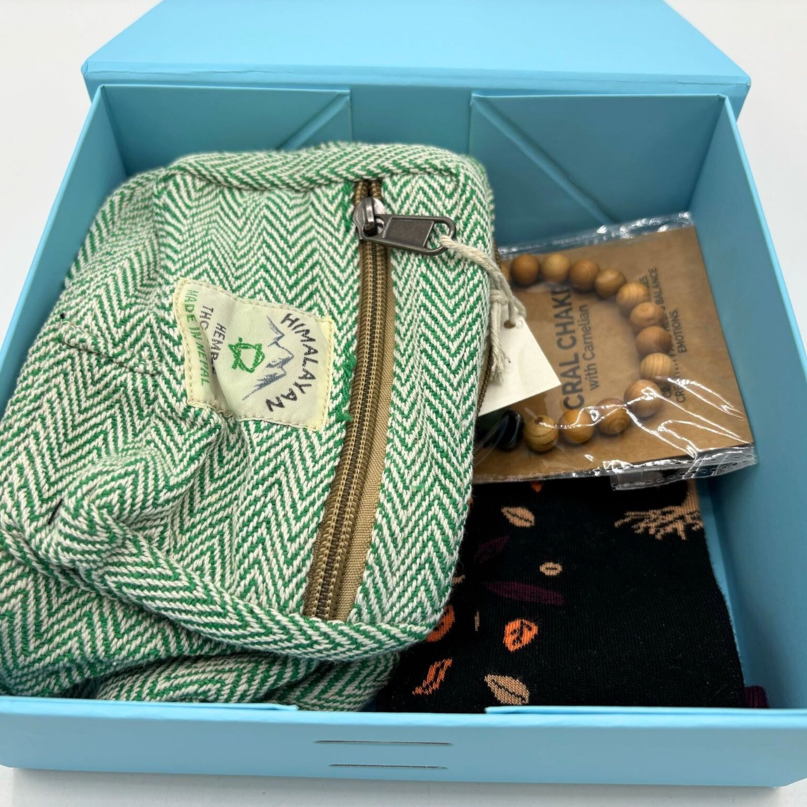 Alliant accessoires de mode durable et bien-être, ce coffret est présenté dans une superbe boîte cadeau pliable bleue avec ruban, prête à offrir.