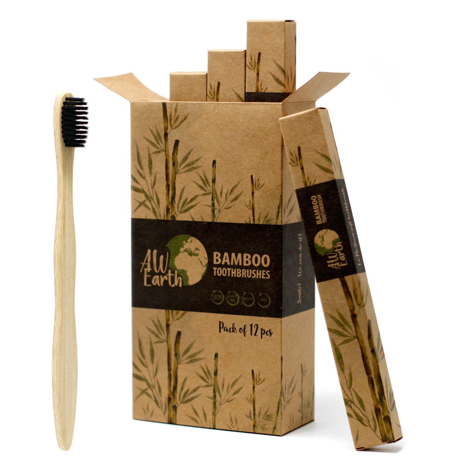 - Brosse à dents en bambou : Alternative écologique, biodégradable et naturellement antibactérienne.